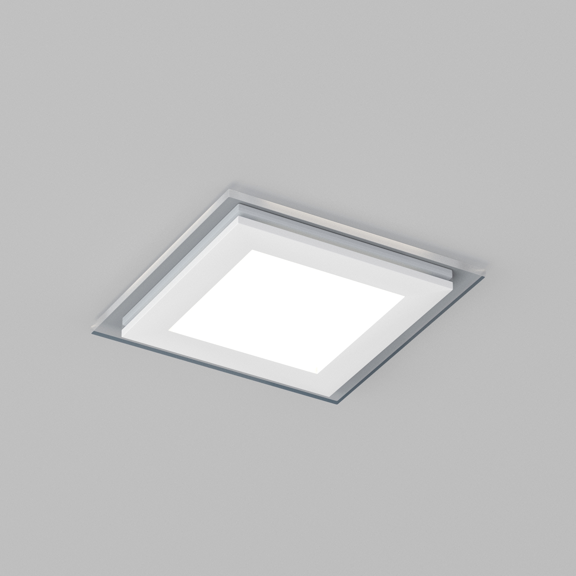 Стеклянная квадратная панель 6Вт / ДНЕВНОЙ 4000-4500K / 430лм / 120°. Размер 96x96x40мм (в отверстие 75x75мм). Корпус белый. Питание от сети 230VAC, драйвер в комлекте 300mA 15-25V. Диапазон рабочих температур -10°..+40°C. Для помещений.