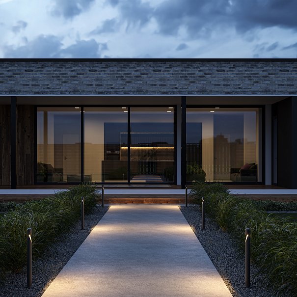 Ландшафтный светильник. Корпус из металла, цвет — графит. Устойчив к коррозии и перепадам температур. Высокий уровень IP 65. LED-модуль с цветовой температурой 3000 К.