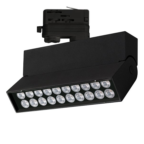 Светильник подвесной для треков/шин 4 провода, 10Вт. Цвет ДНЕВНОЙ 4000K, св.поток 540-600лм, CRI(Ra)>90, угол 24°. Угол наклона 45°. Корпус прямоугольный, черный алюминий, IP40. Размер LxHxW 170x130x36мм. Питание AC 220-240V, 15Вт, драйвер встроенный (DC300mA 25-40V).