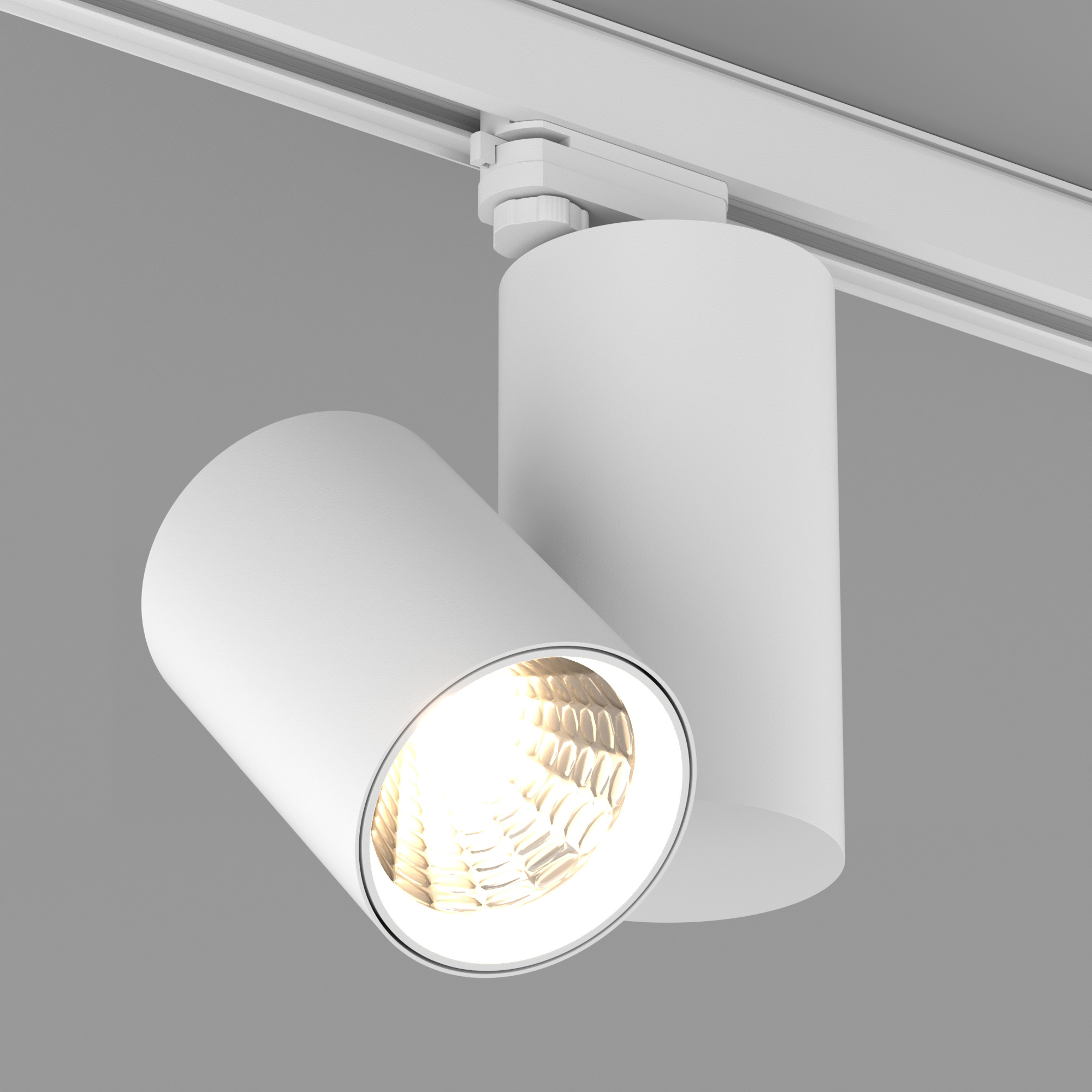 Трековый светильник 15Вт, белый круглый корпус, белая вставка, металл. Цвет свечения ДНЕВНОЙ 4000K, св.поток 1100лм, CRI(Ra)>80, угол 40°. Размер DxL1xL2xW Ø85x124x190x175мм, встроенный драйвер PRI:100-240VAC, SEC:DC 350mA 30-43V, 15Вт.