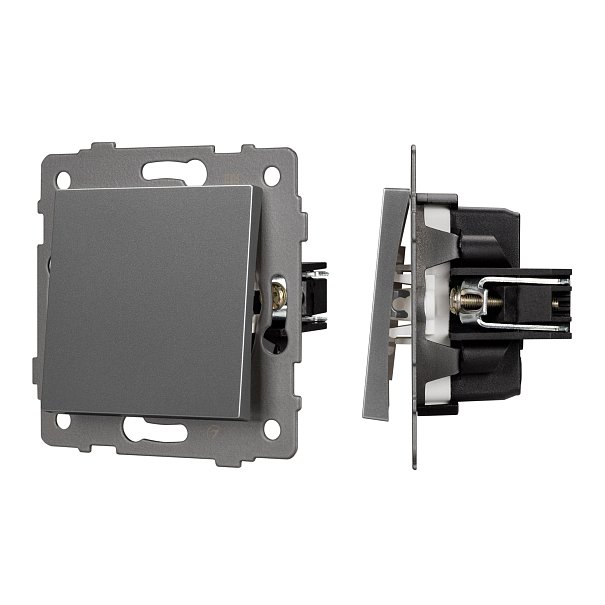 Механизм выключателя света клавишный на 1 пост 1 клавиша (перекрестный). Цвет - серый. Без фронтальной рамки. Уровень пылевлагозащиты IP20. Выключатель устанавливается в стандартный круглый подрозетник. Габаритные размеры: длина 71 мм, ширина 71 мм, высота 52 мм. Гарантийный срок 10 лет.