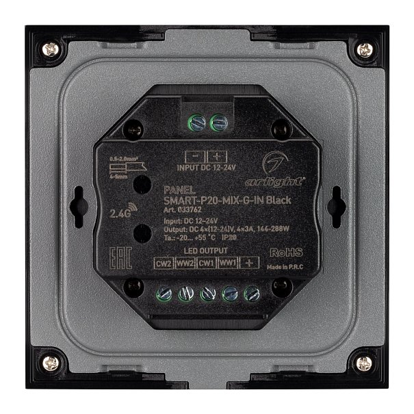 033762 Панель SMART-P20-MIX-G-IN Black (12-24V, 4x3A, Rotary, 2.4G) (Arlight, IP20 Пластик, 5 лет)