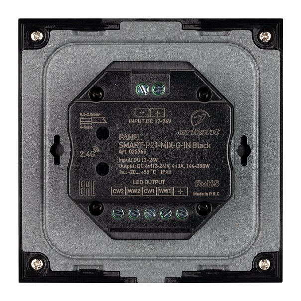| 033765 | Панель SMART-P21-MIX-G-IN Black (12-24V, 4x3A, Sens, 2.4G) (Arlight, IP20 Пластик, 5 лет) |