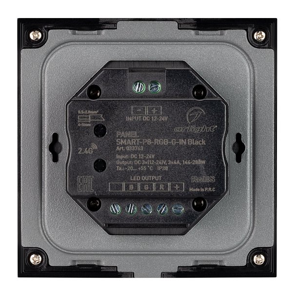 | 033763 | Панель SMART-P8-RGB-G-IN Black (12-24V, 3x4A, Rotary, 2.4G) (Arlight, IP20 Пластик, 5 лет) |