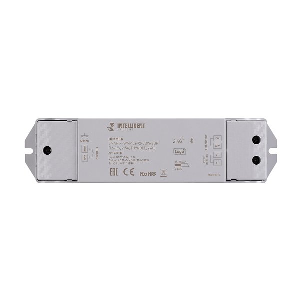 INTELLIGENT ARLIGHT Диммер SMART-PWM-102-72-CDW-SUF (12-36V, 2x5A, TUYA BLE, 2.4G) (IARL, IP20 Пластик, 5 лет)