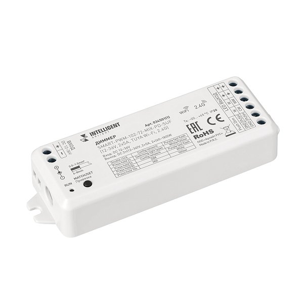 INTELLIGENT ARLIGHT Диммер SMART-PWM-102-72-MIX-PD-SUF (12-36V, 2x5A, TUYA Wi-Fi, 2.4G) (IARL, IP20 Пластик, 5 лет)