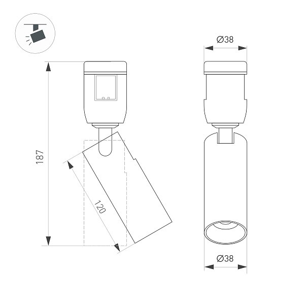 Светильник ART-APRIORI-SPOT-TURN-R38-8W Warm3000 (GD, 36 deg, 48V) (Arlight, IP20 Металл, 3 года)