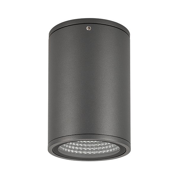 Накладной светильник 12Вт, серый алюминиевый корпус, оптическое закаленное стекло. Цвет ТЕПЛЫЙ БЕЛЫЙ 3000K, св.поток 790лм, CRI(Ra)>80, угол 44°. Размер Ф90x137мм. IP54. Питание AC230V, 12Вт, встроенный драйвер 30-42 В, 300 мА.