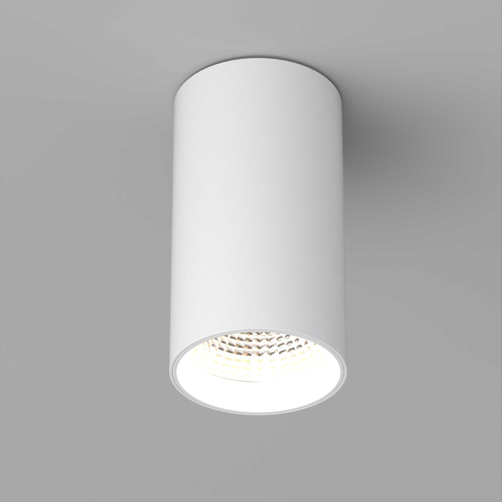 Накладной светильник 15Вт, белый круглый корпус, белая вставка, металл. Цвет ТЕПЛЫЙ БЕЛЫЙ 3000K, св.поток 1100лм, CRI(Ra)>80, угол 40°. Размер Ø85x155мм. Встроенный драйвер PRI:220-240VAC, SEC:DC 500mA 23-36V 15Вт.