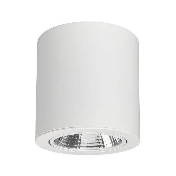Накладной светильник 30Вт, белый корпус цилиндр. Цвет ТЕПЛЫЙ БЕЛЫЙ 3000K, св.поток 2400-2700лм, CRI(Ra)>80, наклоняемая ось, угол 24°. Размер Ф140x140 мм. Питание AC 180-240V, 30Вт, встроенный драйвер (DC 700mA 26-43V).