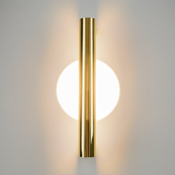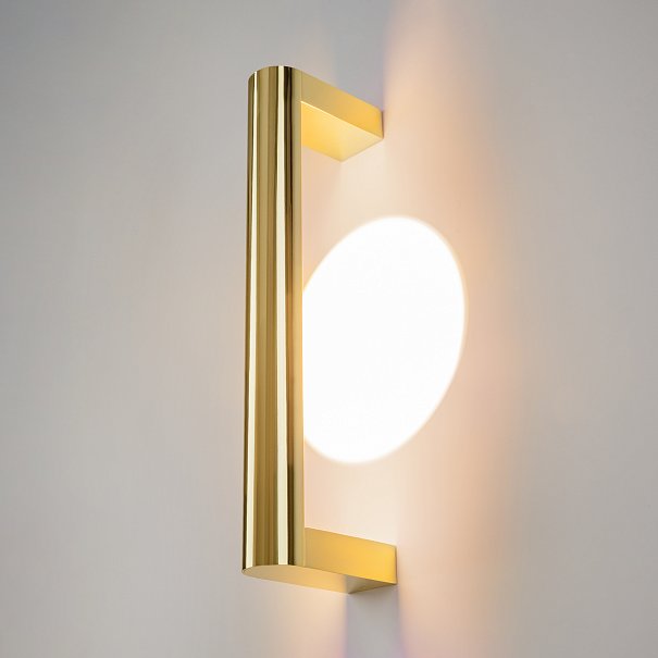Металлическая арматура, цвета: черный, хром, золото. Источник света: LED-светодиод. Световая температура 3000К. Свет переотраженный, угол рассеивания 100 градусов. Дизайнерское решение с использованием линзы, создающей акцентный круг на стене и эффекта переотражения. Поверхность арматуры глянцевая, полузеркальная. Бра подойдет для зонирования помещений.