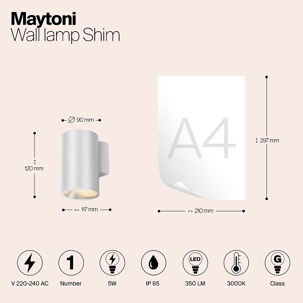 | O303WL-L5W3K | Настенный светильник (бра) Shim 3000К 5Вт IP 65 |