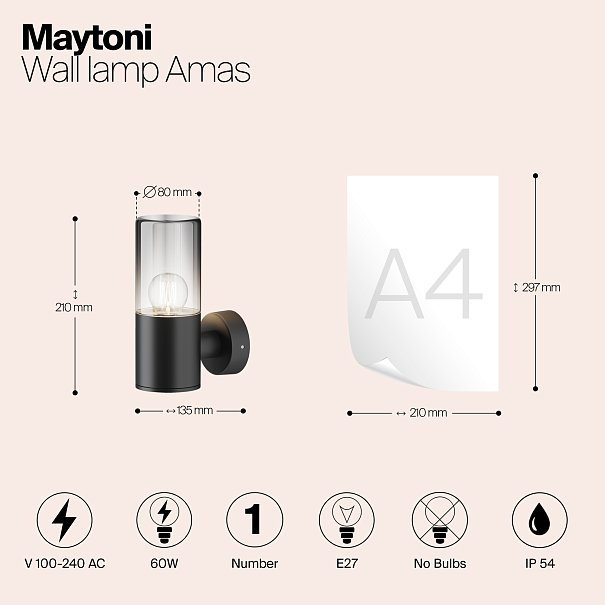 | O432WL-01GF | Настенный светильник (бра) Amas E27x1 60Вт IP 54 |