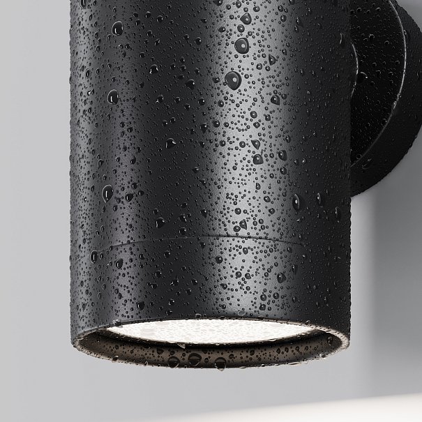 Материал арматуры - алюминий, цвет - графит, черный и белый. Источник света ландшафтной модели - LED (3000К), мощность 3Вт, высокая степень защиты от пыли и влаги IP65, высокий индекс цветопередачи >97. Источник света настенных моделей - лампа с цоколем GU10, мощность 10Вт, повышенная степень защиты от пыли и влаги IP54