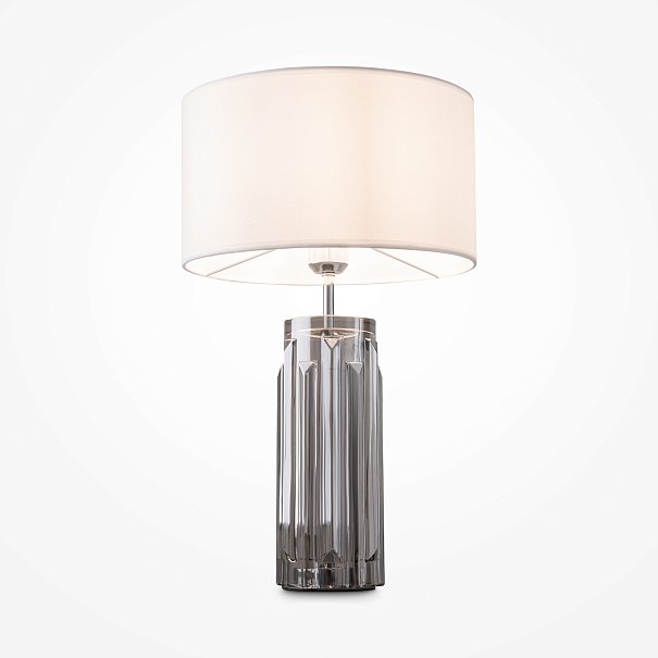 Металлическое основание - дополнено скульптурным литым стеклом в трех оттенках: прозрачном, дымчатом и пудрово-розовом. Хлопковый абажур белого цвета. Цоколь Е27.