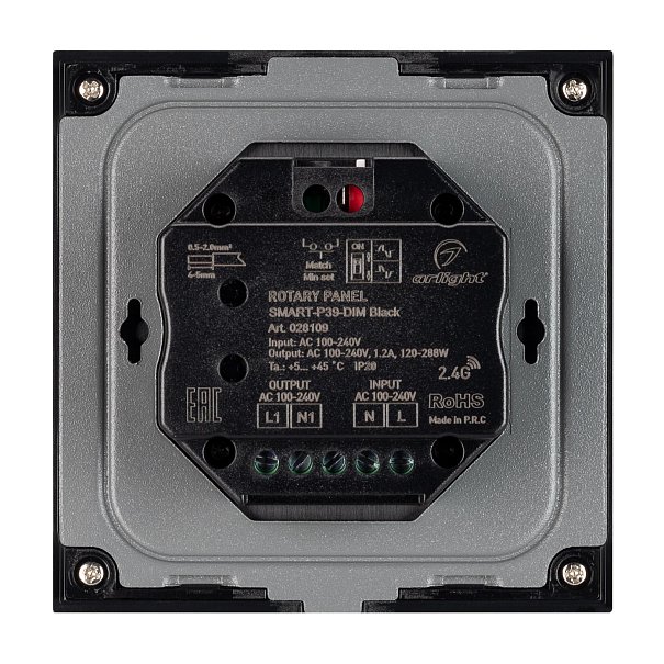 | 028109 | Панель SMART-P37-DIM-IN Black (230V, 1.2A, TRIAC, Rotary, 2.4G) (Arlight, IP20 Пластик, 5 лет) |