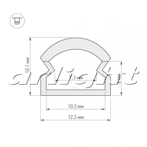 Цельнолитой пластиковый профиль со встроенным полукруглым матовым экраном (светопропускание до 77 %) . Материал - PC. Для лент и линеек шириной до 8 мм. Размер 2000*12,3*10,1 мм. Класс пылевлагозащиты – IP65 (при соблюдении технологии герметизации). Для лент и линеек максимальной мощностью 9,2 ВТ/м. Цена за 1 м.