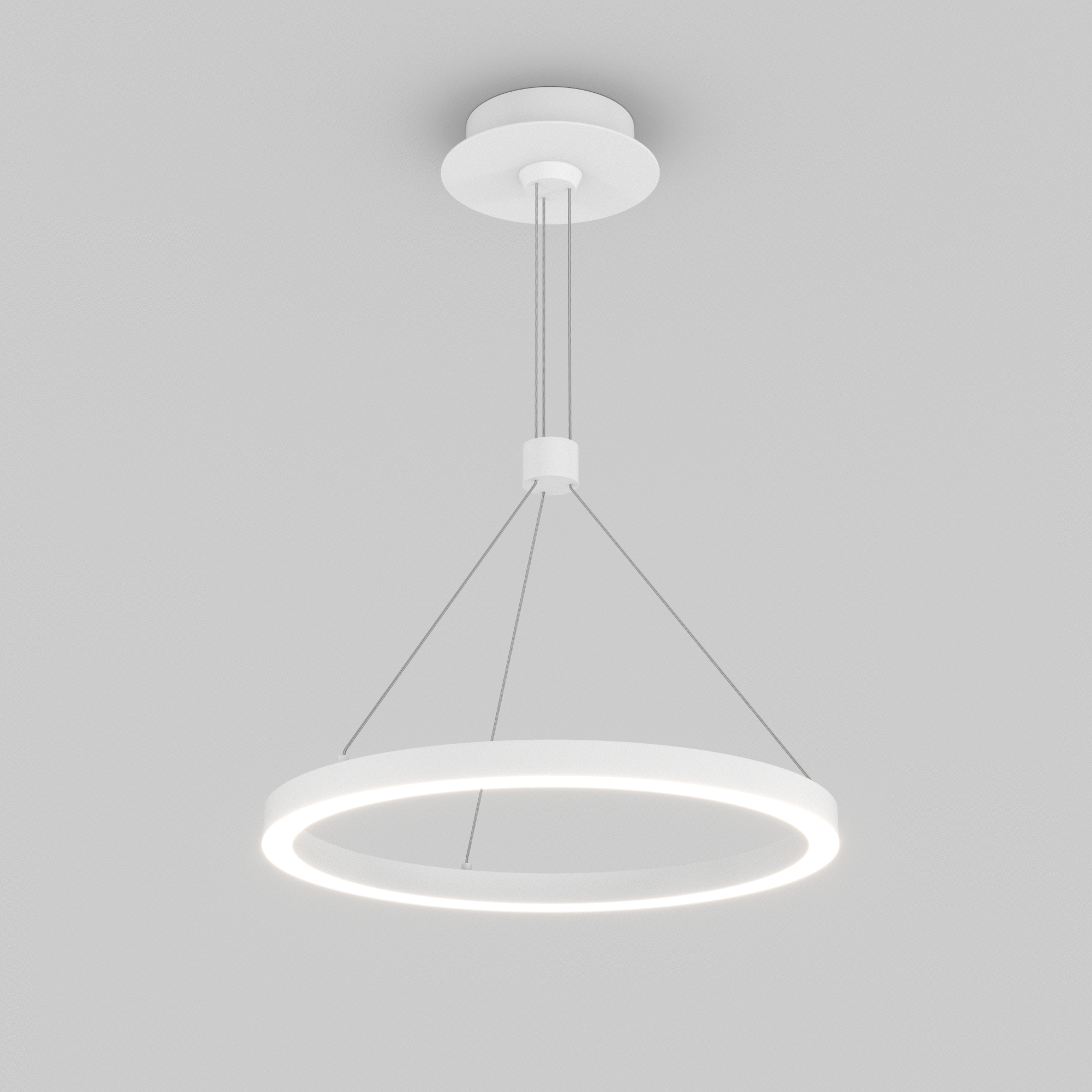 Подвесной светильник. Мощность 24 Вт, св. поток 1380 лм, 58 лм/Вт, дневной 4000 K, CRI>90, угол 120°, напряжение питания 230 В. Белый круглый корпус из алюминия, экран силикон, степень защиты IP20. Размер: диаметр 400 мм, высота 25 мм, ширина профиля 25 мм, размер чаши: диаметр 170 мм, высота 40 мм. Монтаж подвесной, длина подвеса 1200мм. Драйвер 33-40 В, 600 мА Пульсация <5%.