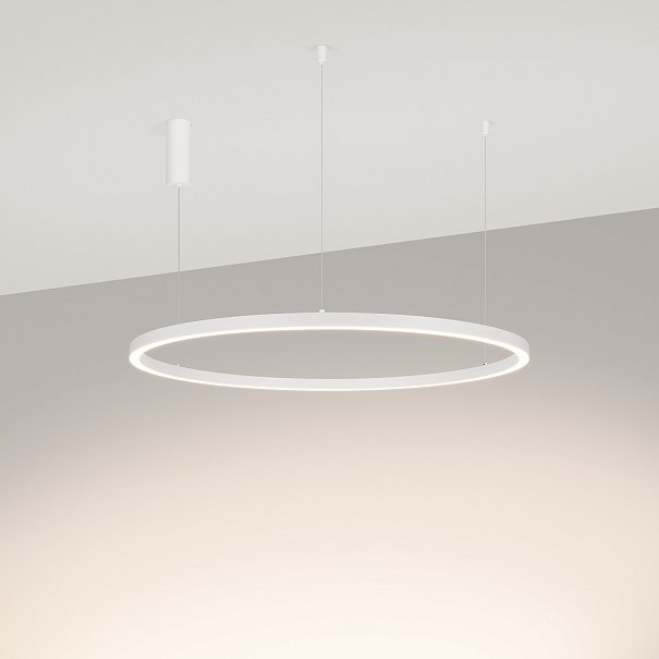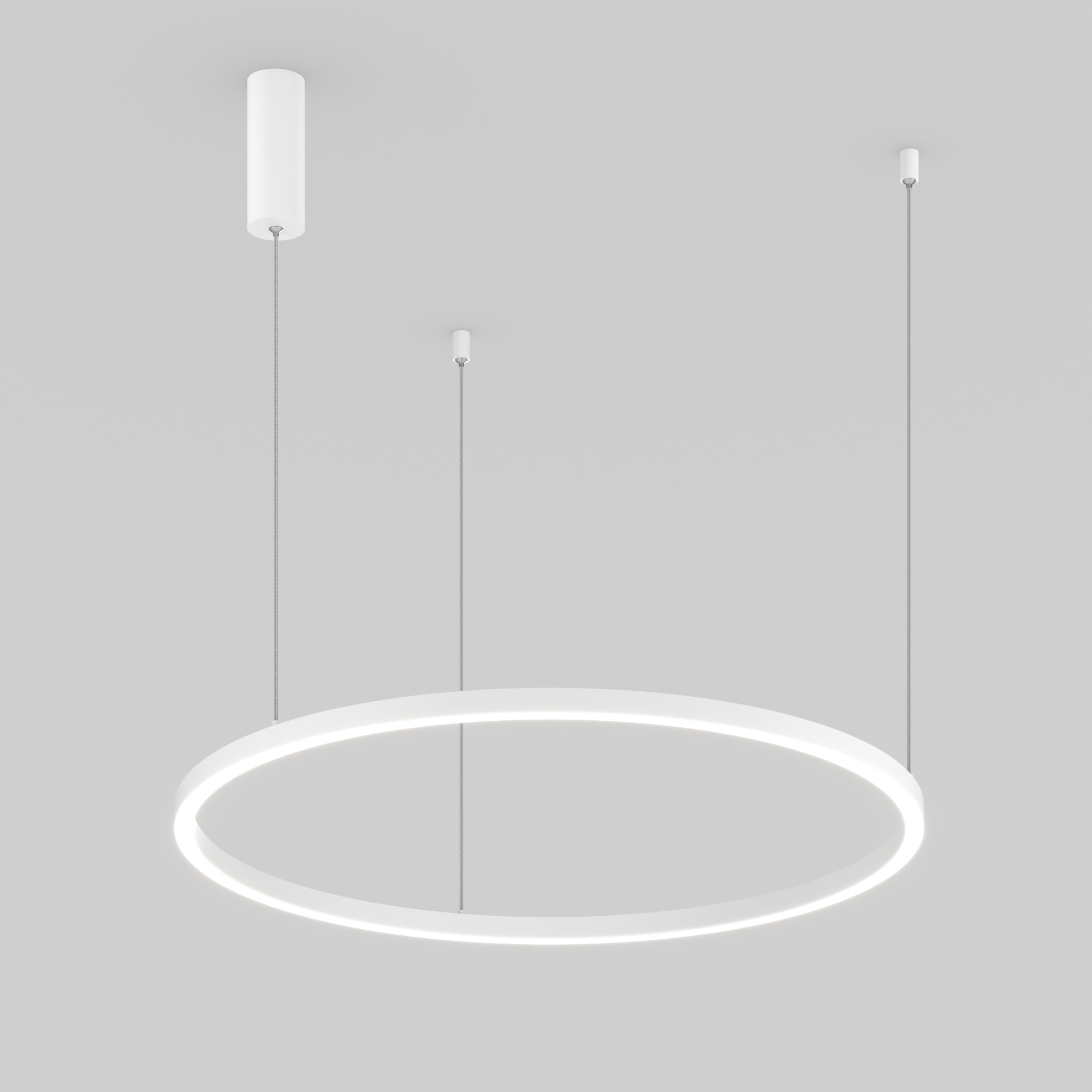 Подвесной светильник. Мощность 42 Вт, св. поток 2500 лм, 60 лм/Вт, дневной 4000 K, CRI>90, угол 120°, напряжение питания 230 В. Белый круглый корпус из алюминия, экран силикон, степень защиты IP20. Размер: диаметр 800 мм, высота 25 мм, ширина профиля 25 мм, размер чаши: диаметр 60 мм, высота 150 мм, драйвер:115 x 40 x 28 мм, 33-40В, 1050 мА. Пульсация <5%. Монтаж подвесной, длина подвеса 1200мм.