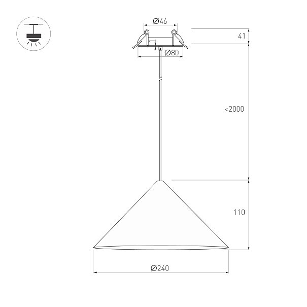 | Длина подвеса | typ: 2000 мм |
