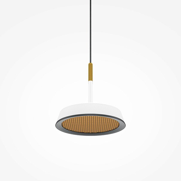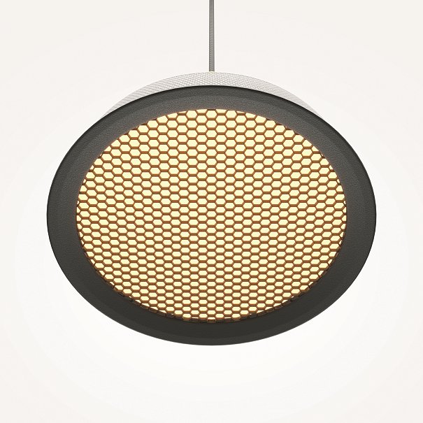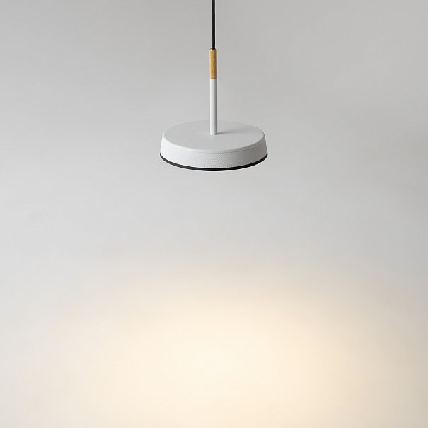 Металлический корпус, цветовая палитра - черный, белый, золото и терракотовый. Два вида плафонов: «таблетка» с графичным рельефом из ассиметричных линий; «таблетка» + идеально-гладкая металлическая «тарелка». Дизайн вдохновлен супрематической эстетикой. LED-источник света, цветовая температура - 3000К. Регулируемый провод - 3 метра.