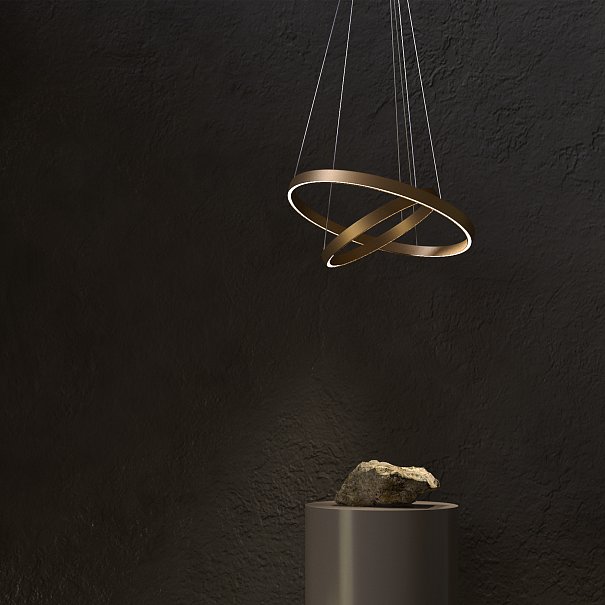 Материал арматуры — алюминий, оттенки — черный, латунь. Актуальная форма окружности. Положение колец подвесных моделей регулируется. Бра с источником света, направленным на стену — трендовая отраженная подсветка. Интегрированные LED-источники света. Цветовая температура 3000К или 4000К – устанавливается на этапе монтажа. Диммируемая яркость.
