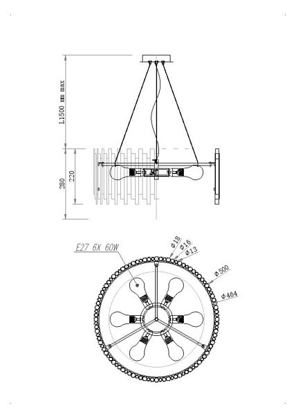 | MOD136PL-06BS | Подвесной светильник Coliseo E27х6 |