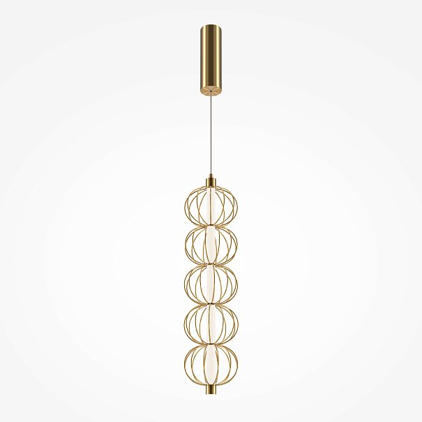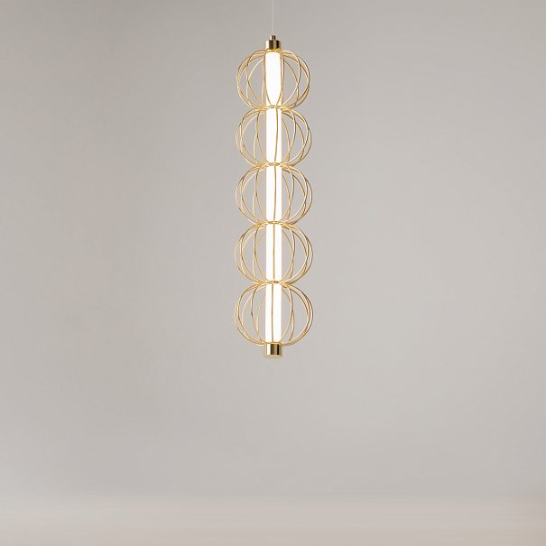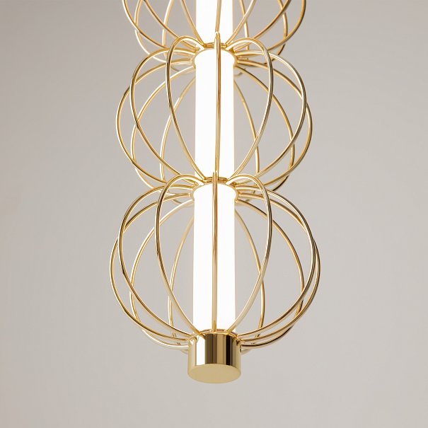 Арматура - металл, цвет - золото. Декоративные проволочные плафоны-сферы - ручная работа. Горизонтальные подвесы в двух вариатах монтажа - накладном и скрытом. Свтовой элемент - силиконоваая трубка с LED-источником. Цветовая температура 3000К.