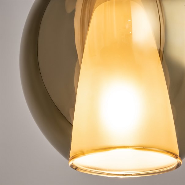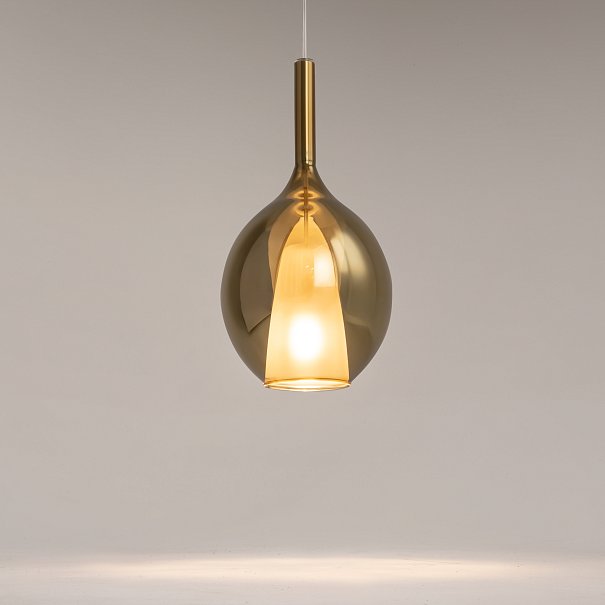 Металлическое основание, цвет — черный. Двойные стеклянные плафоны. Многообразные геометрические формы плафонов. Цвет стекла: зеркальный золотой, кофейный и дымчатый, а также градиентный белый. Регулируемая длина провода — 3 метра. Источник света — лампа с цоколем Е27.