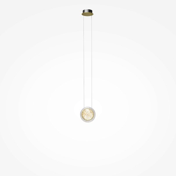Арматура из металла цвета латунь с сатинированным финишным покрытием сочетается с прозрачными плафонами. Подвесные одинарные, горизонтальный и каскадные светильники оснащаются LED-модулем с двумя плоскими плафонами из акрила со сложным, актуальным паттерном на поверхности. Цветовая температура — 3000К, угол рассеивания — 125 градусов.