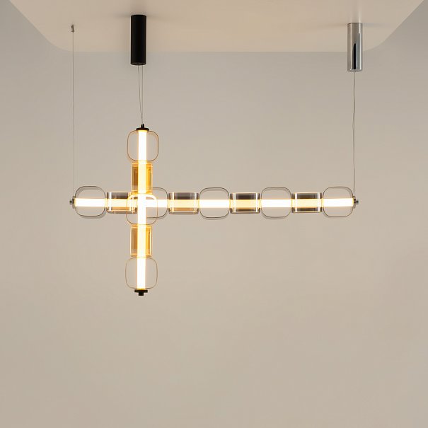 Дизайнерская серия, созданная в коллаборации с Британской Высшей школой Дизайна. Вдохновлена концепцией ритма Леонардо да Винчи. Два цветовых решения: янтарное стекло в сочетание с арматурой в черном цвете с сэнди-эффектом, серое тонированное стекло в сочетании с арматурой с глянцевым хромированным покрытием. LED-источник света скрытый матовым акриловым рассеивателем. Два типа подвесных светильников: одиночный и горизонтальный. Регулируемая высота подвеса и провод длиной 3 метра. Возможность создания композиций.