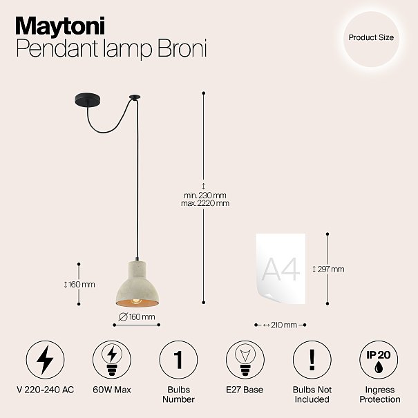 | T434-PL-01-GR | Подвесной светильник Maytoni T434-PL-01-GR |
