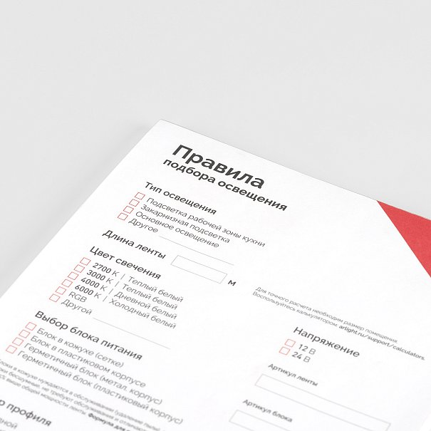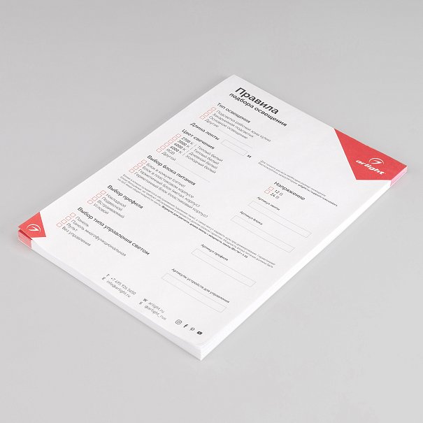 Блокнот- подсказка Правила подбора ленты, блоков питания, профиля и управления (Arlight, -)