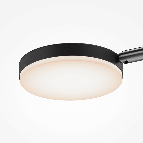 Плафоны и арматура из металла. Цвет рассеивателя — белый, арматура черная или белая. Конструкция предусматривает шарнирный механизм, позволяющий регулировать направление света и высоту светильников. Плафоны вращаются на 90 и 360° (в вертикальной и горизонтальной плоскостях). Угол рассеивания — 120 градусов. Тип света — рассеянный.