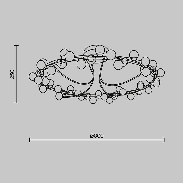 Арматура из металла в золотом цвете. Плафоны-сферы — белый пластик. Дизайн с имитацией молекулярной структуры. LED-источники света.