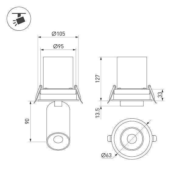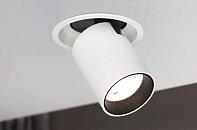 Встраиваемый поворотный выдвигающийся светильник для потолка. Мощность 10 Вт, св. поток 900 лм, 90 лм/Вт, дневной 4000 K, CRI>90, угол 24°, напряжение питания 230 В. Белый круглый корпус из алюминия, экран PC, степень защиты IP20. Размер (ØД×В) 105×127 мм. Монтаж встраиваемый, установочное отверстие Ø 95 мм. Драйвер 30-48 В, 250 мА, пульсация <1%.
