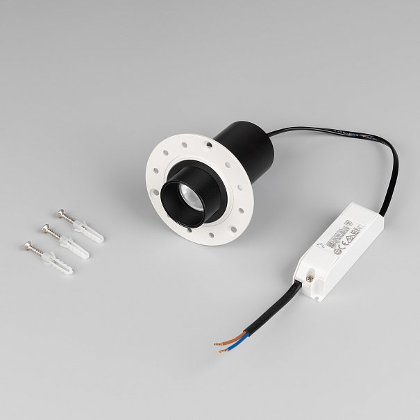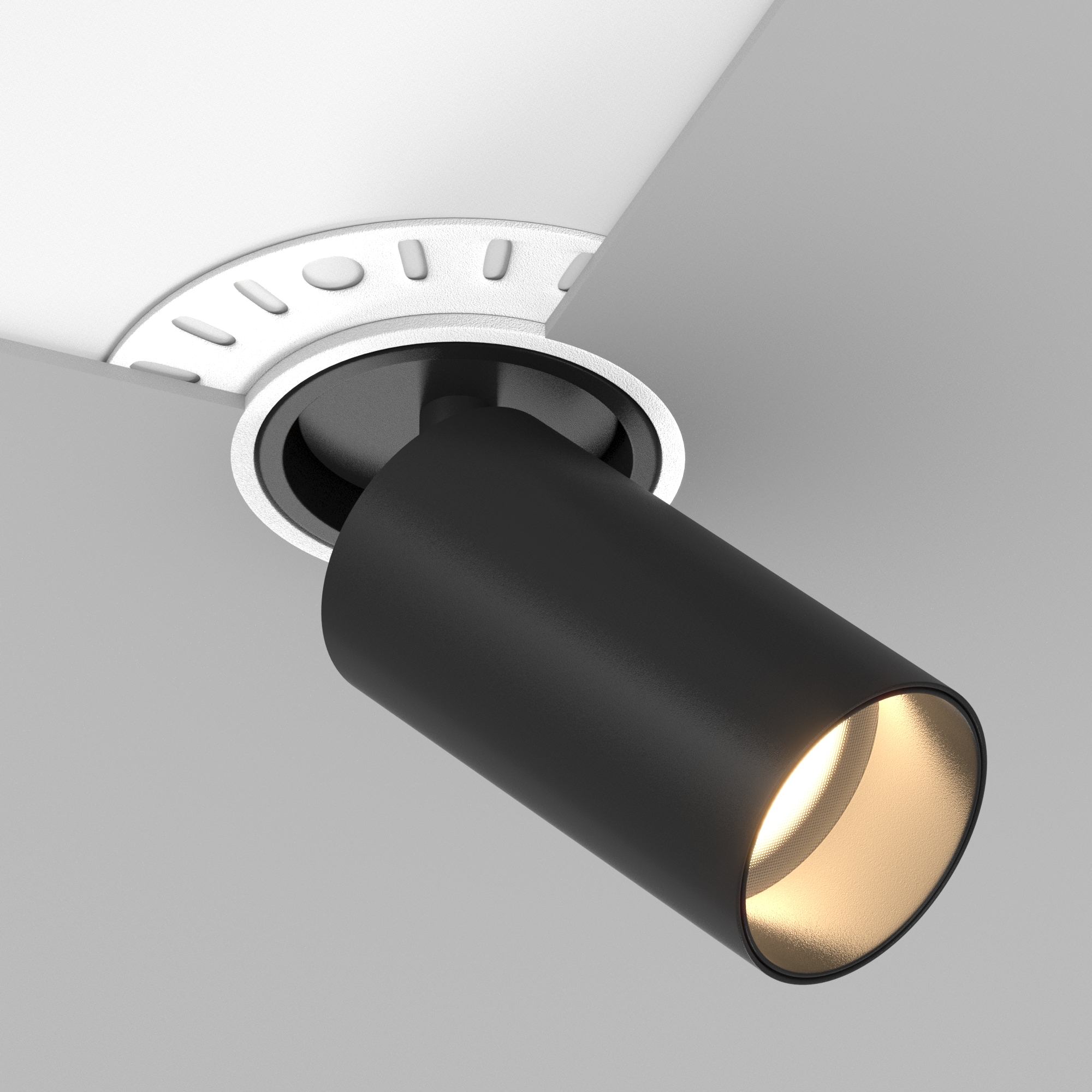 Светильник встраиваемый поворотный. Мощность 7 Вт, св. поток 490 лм, 70 лм/Вт, теплый 3000 K, CRI>90, угол 36°, напряжение питания 230 В. Черный круглый корпус из алюминия, экран PMMA, степень защиты IP40. Размер: диаметр 35 мм, высота светового модуля 65 мм. Угол поворота 360°, угол наклона 90°. Монтаж встраиваемый, установочное отверстие: диаметр 55 мм, глубина 73 мм. Драйвер в комплекте 27-50 В, 150 мA, пульсация <1%.