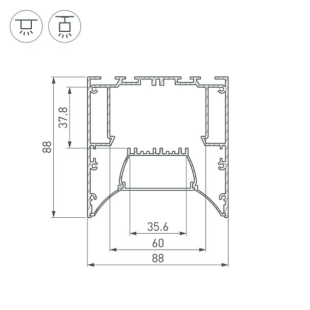 Профиль ARH-POWER-W88-COMFORT-2000 ANOD (Arlight, Алюминий)
