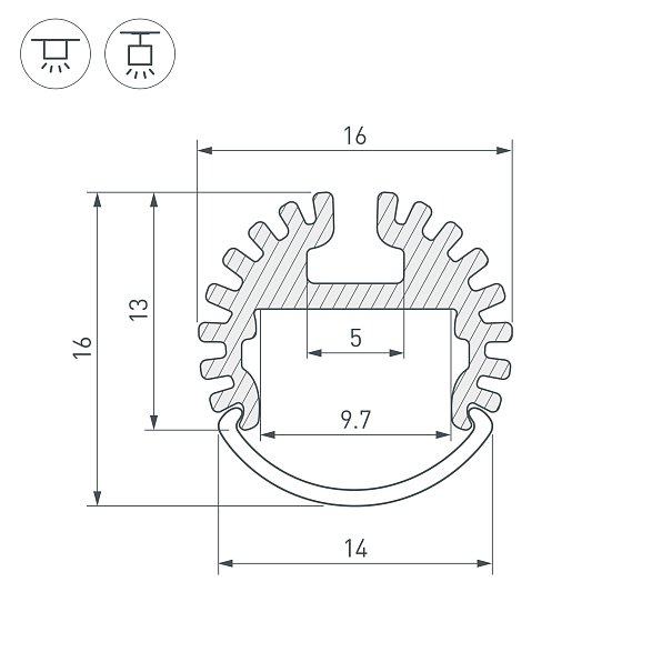 | 039217 | Профиль ARH-ROUND-D16-2000 ANOD (Arlight, Алюминий) |