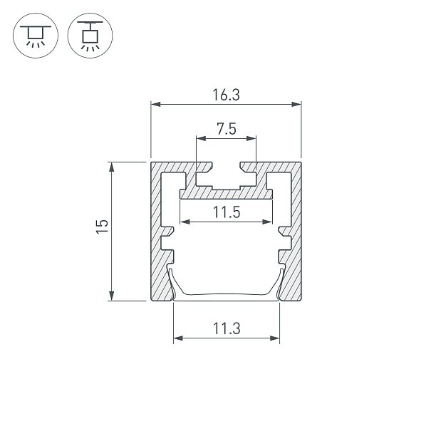 Алюминиевый анодированный профиль для светодиодных лент и линеек. Совместим с профилем 035014. Габаритные размеры (L×W×H): 2000x16,3x15 мм. Ширина площадки для ленты 11,5 мм. Экраны, заглушки и другие аксессуары приобретаются отдельно. Цена за 1 метр.