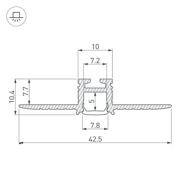 Алюминиевый мини-профиль для светодиодных лент и линеек, встраиваемый в гипсокартон, под строительную отделку. Габаритные размеры (L×W×H): 2000x42,5x10,4 мм. Позволяет создать узкую элегантную линию света без видимых частей алюминия. Ширина световой линии 7,8 мм. Ширина площадки для ленты 7,2 мм. Экраны, заглушки и другие аксессуары приобретаются отдельно. Цена за 1 метр.