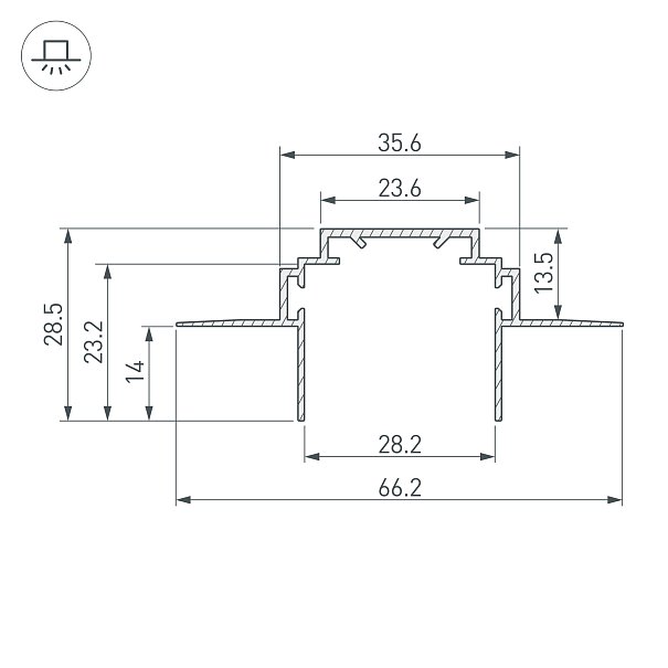 Алюминиевый профиль-держатель для встраивания в гипсокартон толщиной 12.5 мм. В TEK-PLS-ZM можно установить любой профиль PLS-LOCK при помощи клипс TEK-PLS-CLIP. Рекомендуется профиль PLS-LOCK-H25-FS (016446) для создания полосы света в один уровень с потолком. Габаритные размеры (L×W×H): 2000x66,2x28,5 мм. Заглушки и другие аксессуары приобретаются отдельно. Цена за 1 метр.