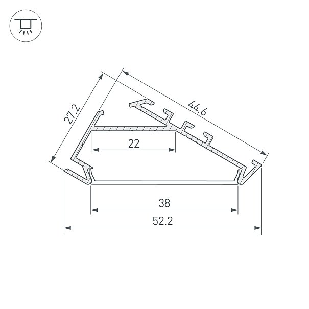 Алюминиевый анодированный угловой профиль для светодиодных лент и линеек. Угол свечения 30°. Габаритные размеры (L×W×H): 2000x44,6x27,2 мм. Ширина площадки для ленты 22 мм. Экраны (плоские, круглые или квадратные), заглушки и другие аксессуары приобретаются отдельно. Цена за 1 метр.
