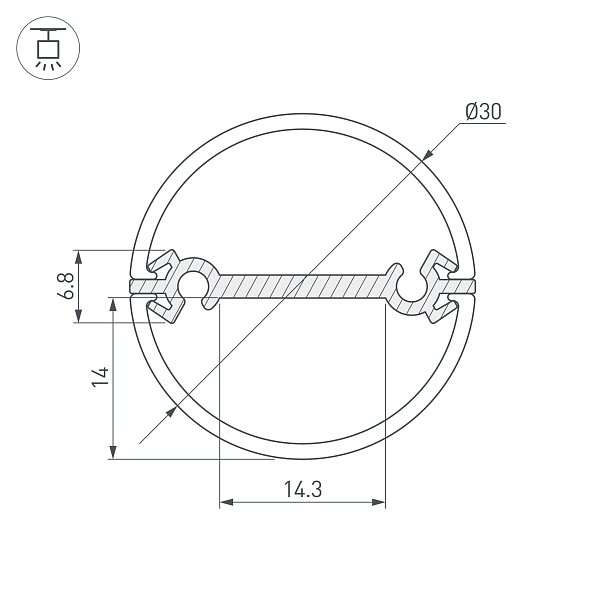Профиль ROUND-D30-DUAL-2000 ANOD (Arlight, Алюминий)