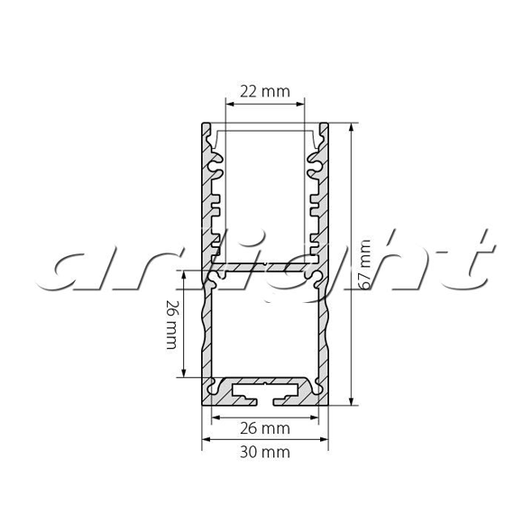 Алюминиевый профиль длина 2м в комплекте с прозрачным экраном. Материал экрана - PC, UV-защитный, ударопрочный. Размеры 30х67 мм. Размер отсека для блока питания 26х26мм