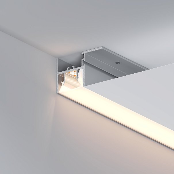 Алюминиевый профиль для натяжных потолков (боковая линия - монтаж к потолку). Решение 2-в-1 - каркас для крепления натяжного потолка и профиль для установки светодиодной ленты. Для дизайнерских решений «линии света» в натяжных потолках. Монтируется к потолку, накладной способ. Натяжной потолок крепится к профилю с одной стороны. Габаритные размеры (L×W×H): 2000x52,2x35,5 мм. Ширина площадки для ленты 13 мм. Экраны, заглушки и другие аксессуары приобретаются отдельно. Цена за 1 метр.