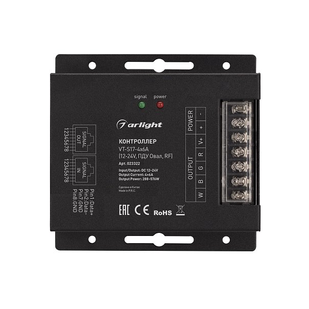 | 023322 | Контроллер VT-S17-4x6A (12-24V, ПДУ Овал, RF) (Arlight, IP20 Металл, 3 года) |
