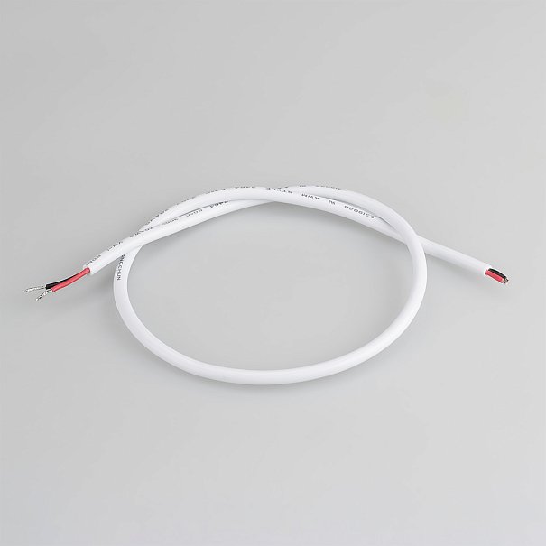 Провод питания для гибкого неона MOONLIGHT. 2 проводника, калибр проводника 20AWG, материал проводника - лужёная медь, внешний диаметр 4,5 мм. Внешняя оболочка - ПВХ белого цвета. Длина кабеля в отрезке - 500 мм.