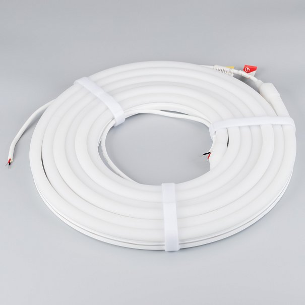 Гибкая герметичная лента (неон серии MOONLIGHT), сечение 12×24 мм. Светодиоды SMD 2835 140 шт/м. Цвет свечения ТЕПЛЫЙ БЕЛЫЙ (2200 К), индекс цветопередачи CRI>80, световой поток 360 лм/м, угол излучения 178°. Мощность 9.6 Вт/м, питание 24 В. Класс пылевлагозащиты IP68. Размеры 5000×12×24 мм. Мин. отрезок 50 мм. Горизонтальный изгиб SIDE, минимальный радиус изгиба 60 мм. Вывод кабеля с двух сторон. Катушка 5 м. Цена за 1 м. Гарантия 3 года.