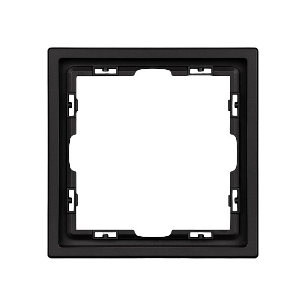 Рамка пластиковая на 1 пост, под встраиваемый механизм. Цвет - черный, с Soft-Touch покрытием. Среднего уровня герметичности IP20. Ориентация монтажа горизонтальная. Габаритные размеры: длина 81 мм, ширина 81 мм, высота 8.55 мм. Гарантийный срок 12 мес.